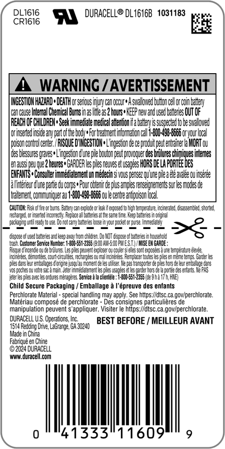 Duracell Lithium Coin batteries provide reliable, long-lasting power for your specialty devices. These batteries are guaranteed for 10 years in storage, so you can rest assured they will be ready when you need them. From storm prep to holiday needs, Duracell is the # 1 trusted battery brand.