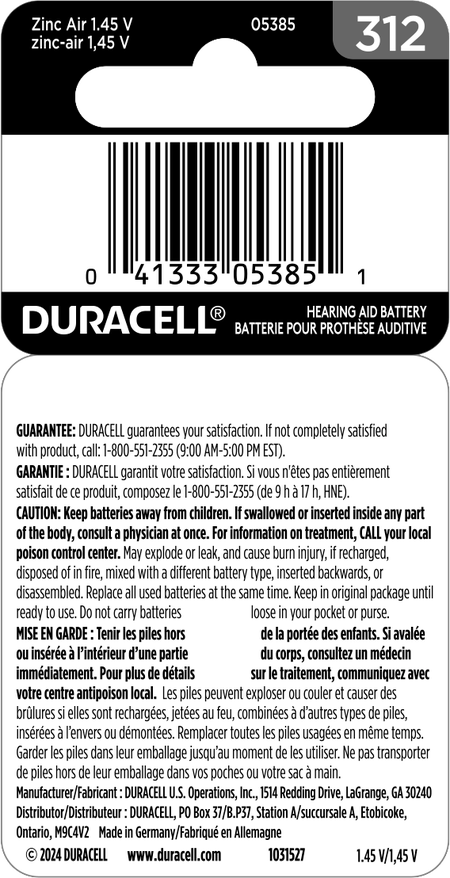 Duracell Hearing Aid batteries are color-coded, making it easy to find the size that’s right for you. Plus, they are guaranteed for 4 years in storage, so you can rest assured they will be ready when you need them. Hear every moment with long-lasting power in Duracell Hearing Aid batteries.